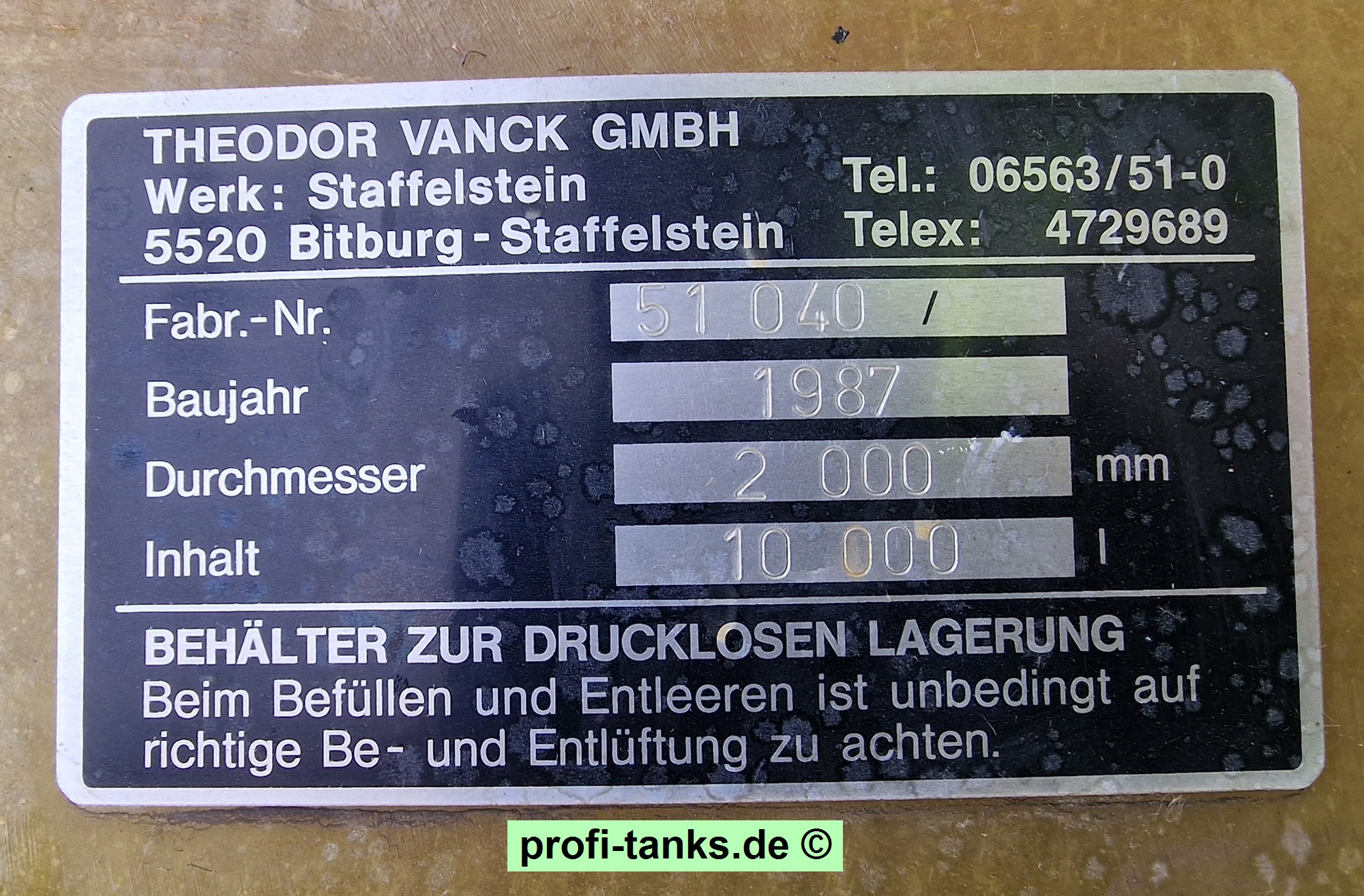 Inhalt: ca. 10 m³ / 10.000 Liter