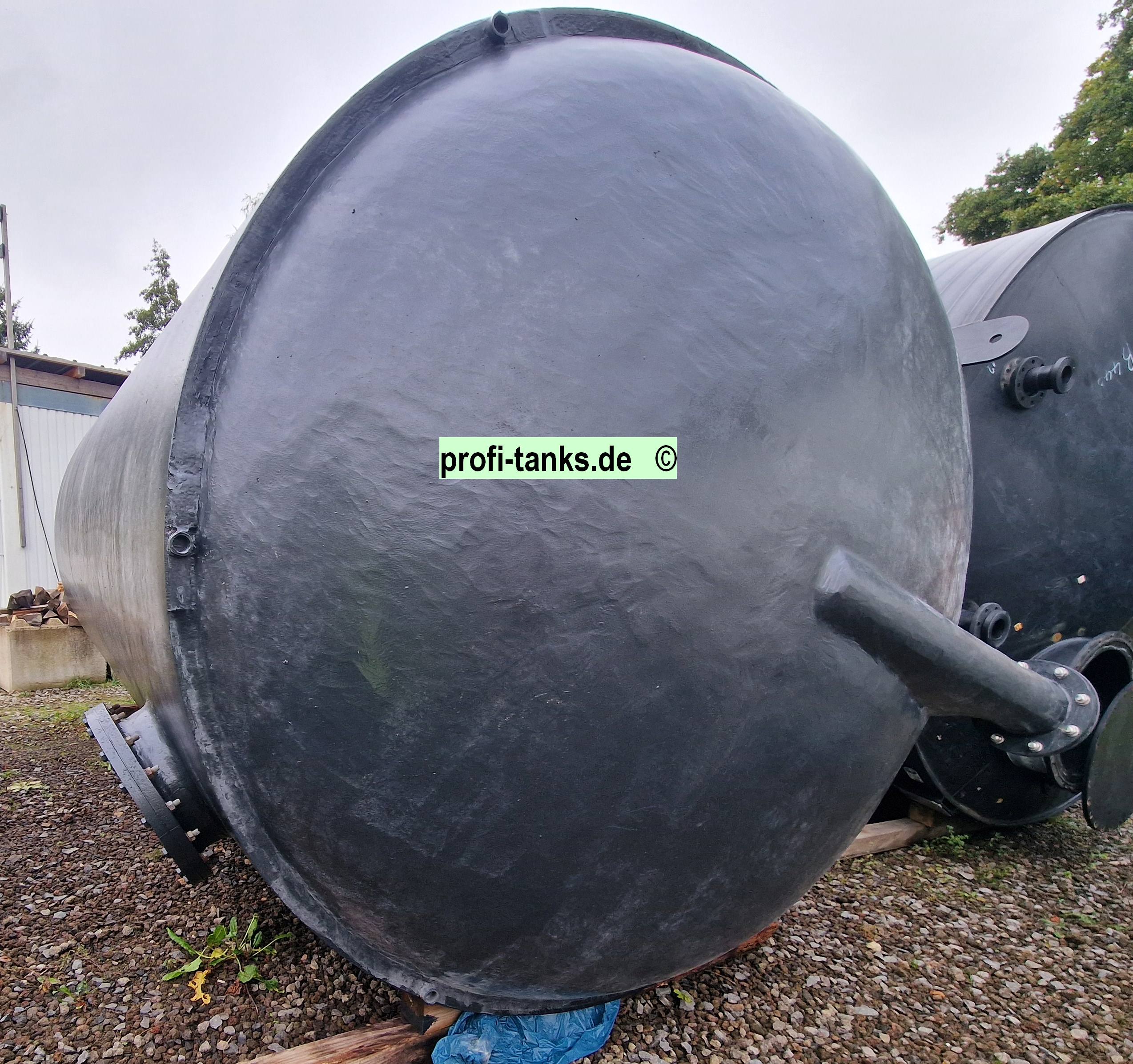 P424 – gebrauchter ca. 25 m³ / 25.000 L Polyestertank, GFK-Tank, Staffelstein-Tank, stehend auf Kegeln