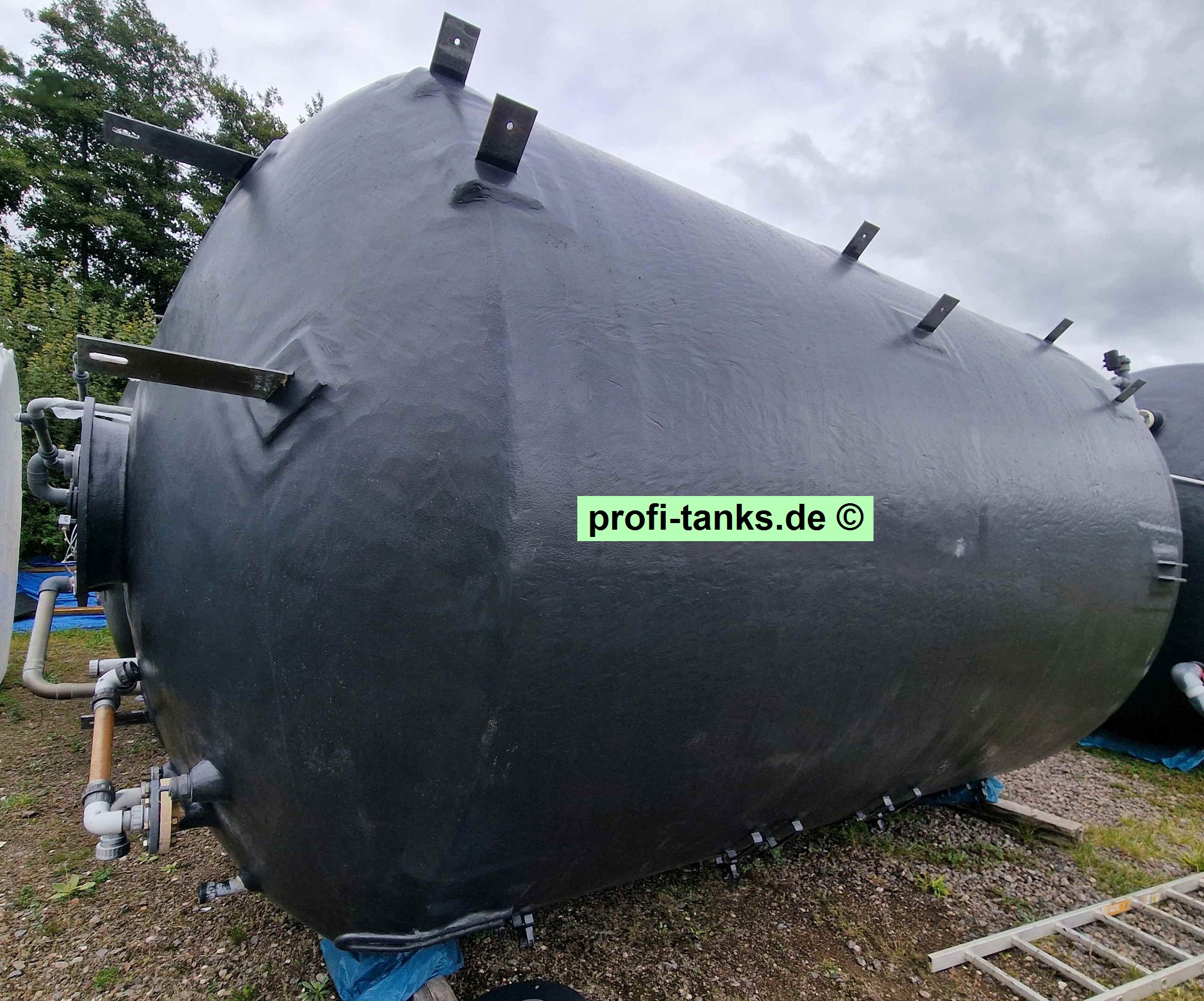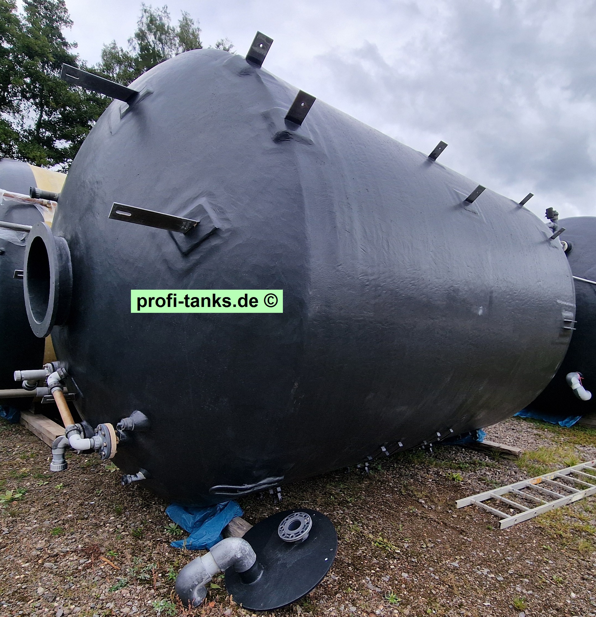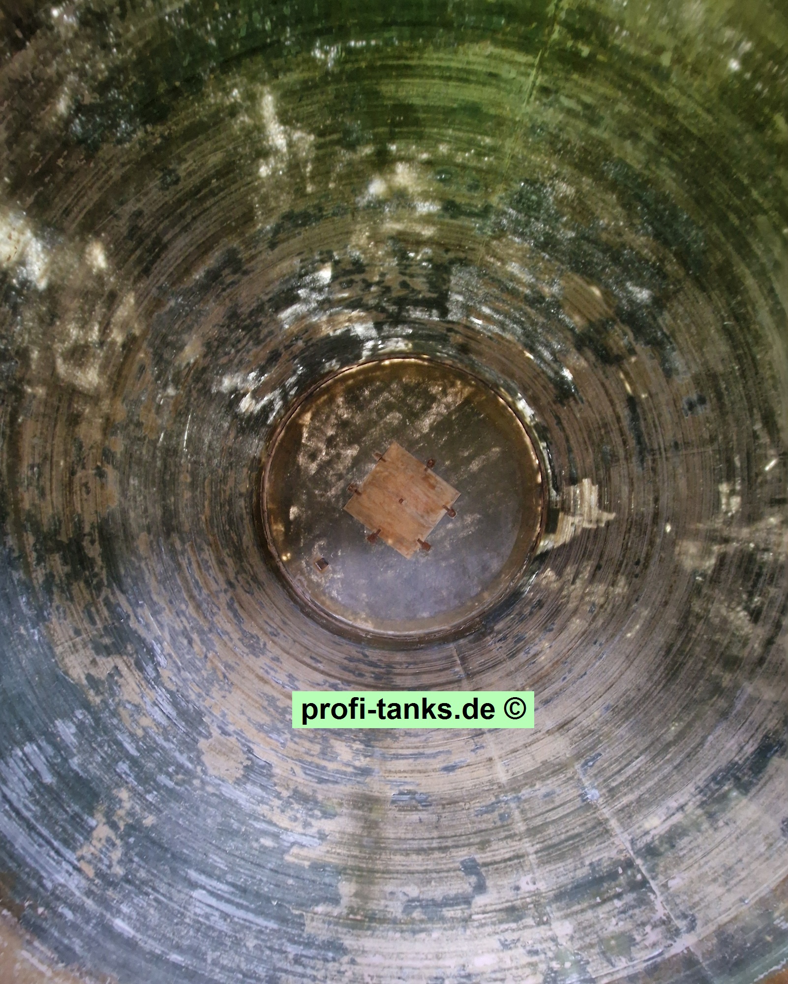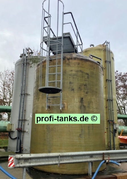 Sonstiges: Gebrauchter Polyestertank, gereinigt und in gutem Zustand. Stehender GFK-Lagertank auf Flachboden, Dom oben auf dem Dach, mehrere Zu- und Ausläufe, unten mit Auslauf DN100. Ehem. Salzsole-Tank, neu gestrichen. Inkl. Dachplattform und halbe Leiter.