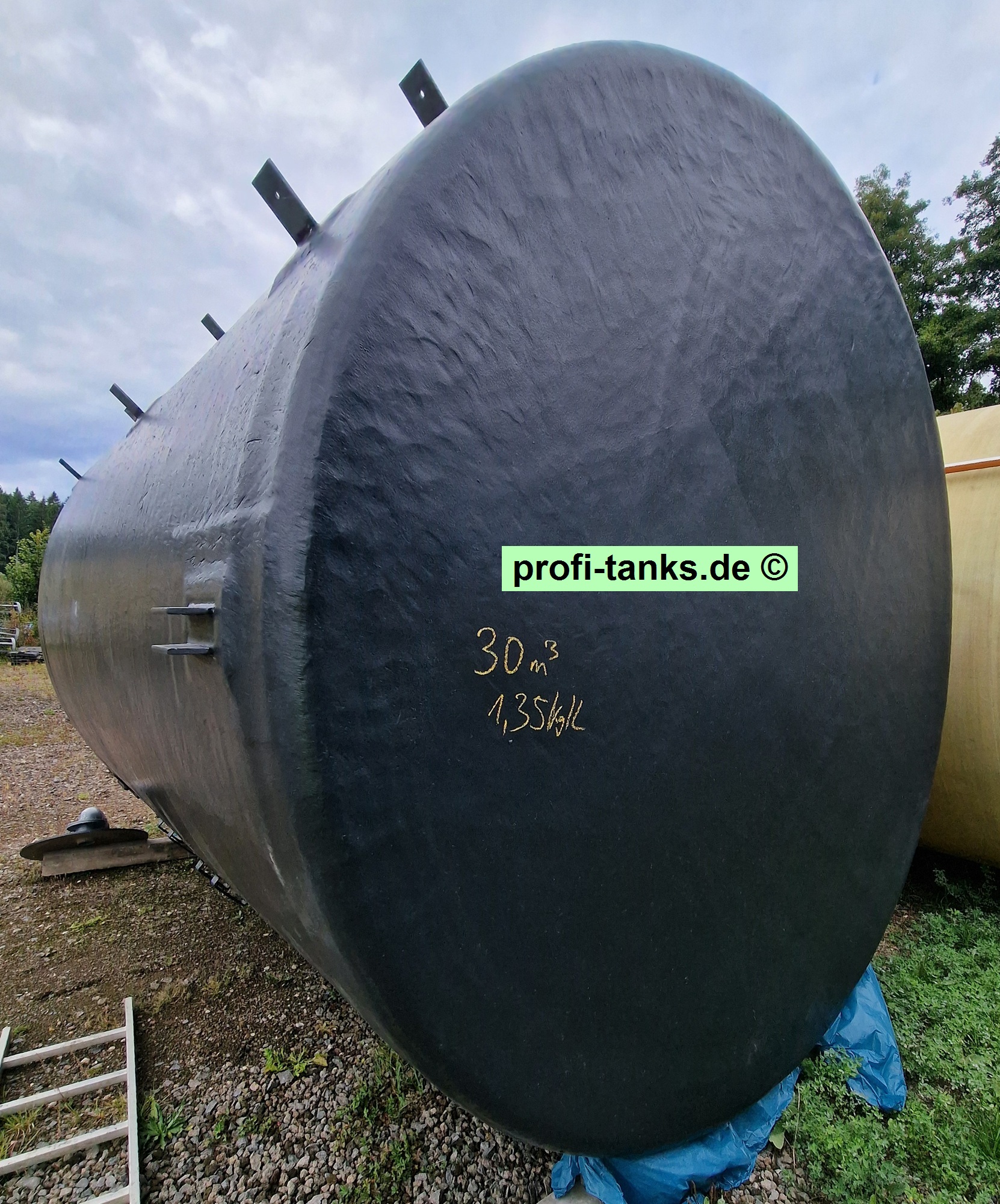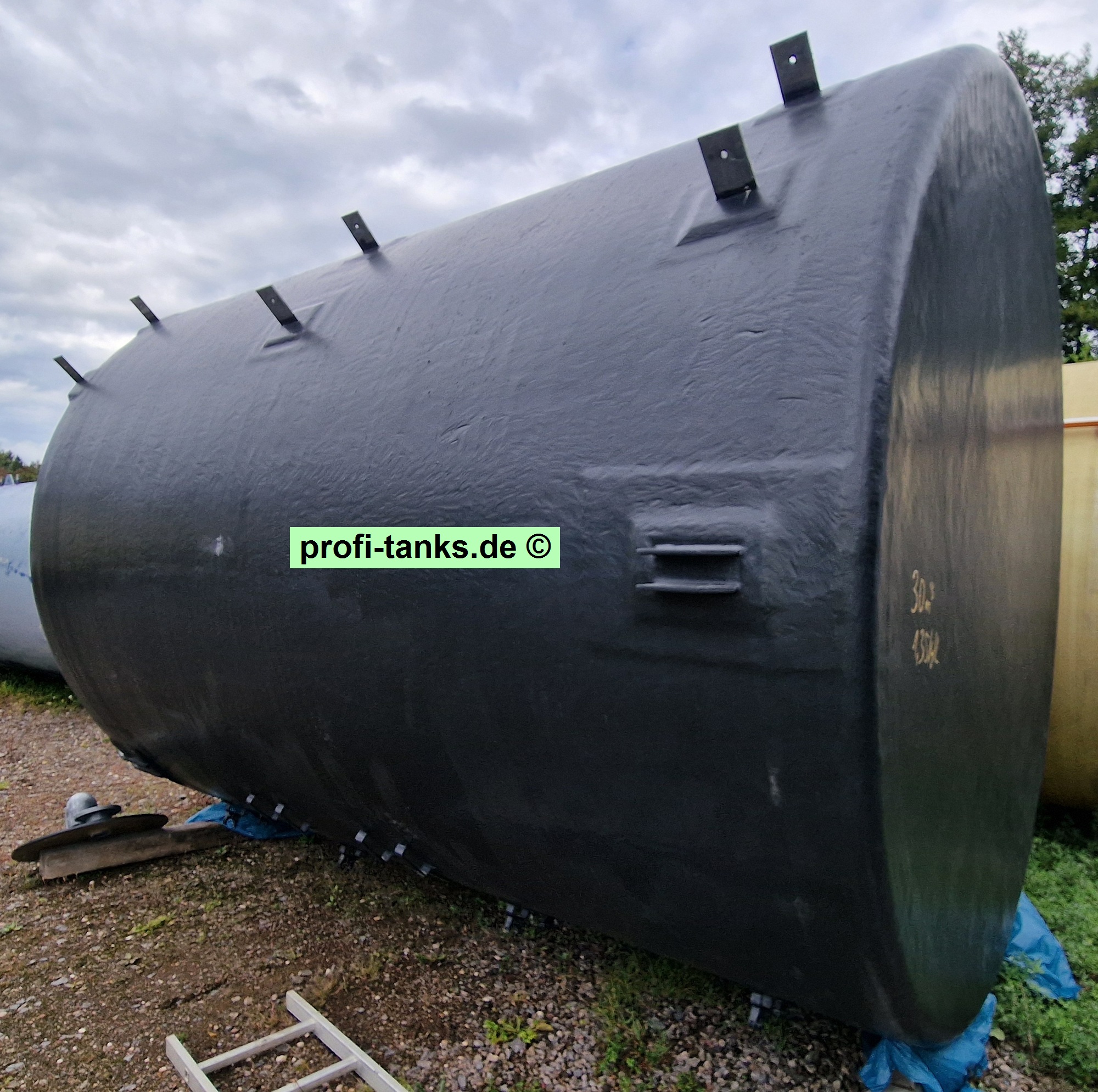 P413 – gebrauchter ca. 30 m³ / 30.000 L Polyestertank, GFK-Tank, Erka-Tank, stehend auf Flachboden