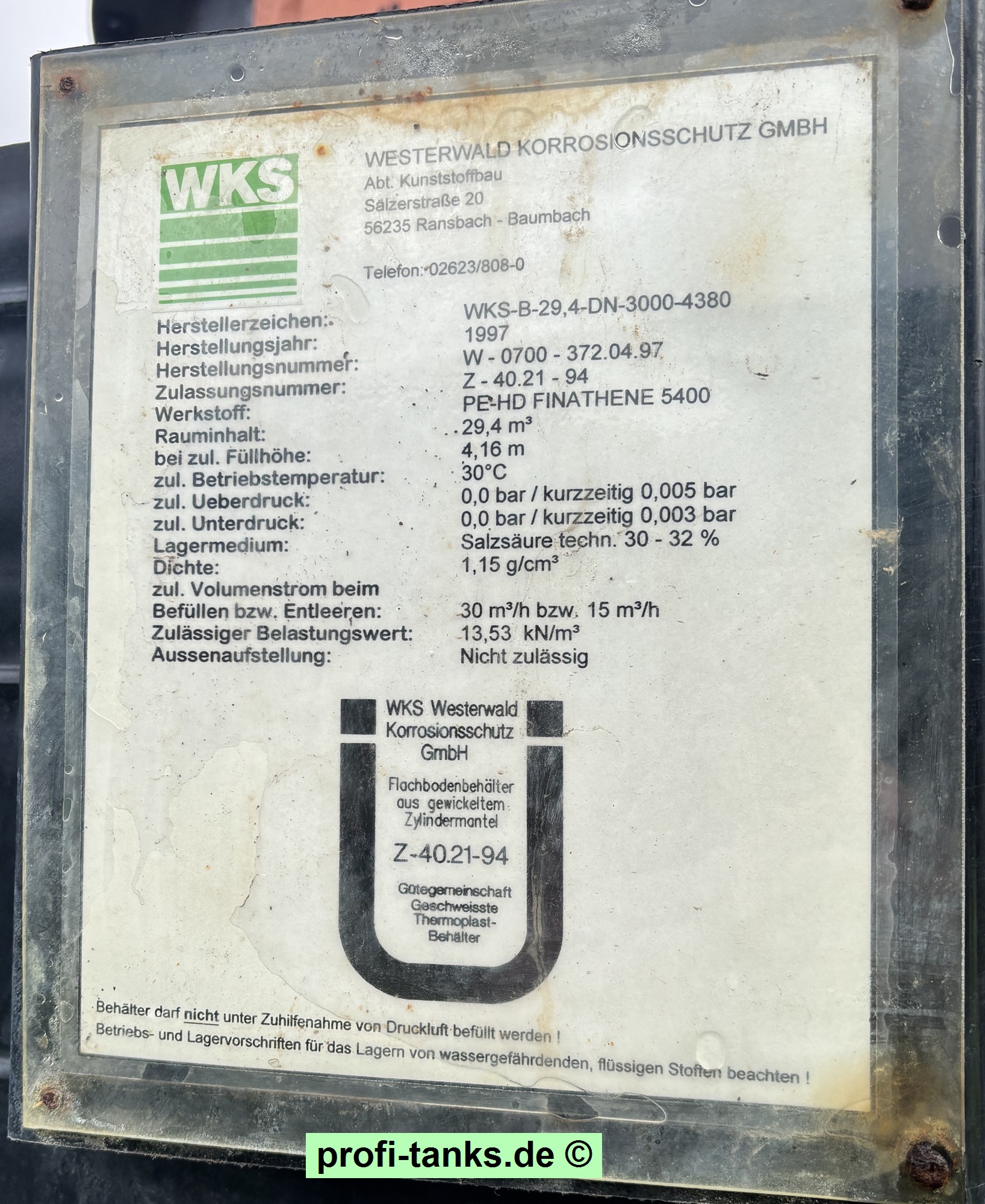 Dieser Behälter kann als Lagertank für viele verschiedene Medien genutzt werden. Ehemaliger Chemietank, 32%-Salzsäuretank, DIBT und Medienliste vorhanden.
